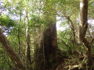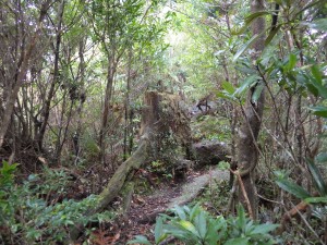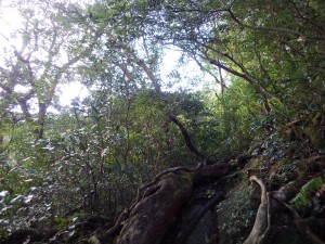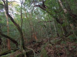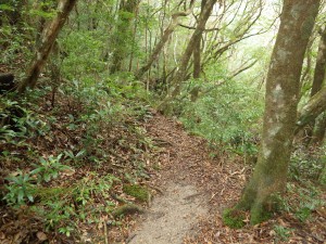 | 樹林帯が続く | もちろん巨木も多い | 少しだけ平坦な道に |