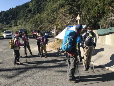 我が町北九州市小倉南区から、わずか1時間半ほどで山口市と萩市の境に位置する東鳳翩山の登山口に到着する。ちょうど瑠璃光寺の入口から錦鶏湖へと上ったところに錦鶏ノ滝駐車場があるので停めさせてもらう。今回は、オブザーバで女性3名が参加。このところ参加人数が少なくなっていたが今回は賑やかな山行になった。さて鳳翩山と珍しい名の山だが、山口市のウェブサイトに「"嘘も方便"からと言われ,古書に『方便山 大石村にあり』と記述されている。」とある。「方便山」ではあまりに趣がないので鳳翩山としたのか、なかなかセンスが良いではないか。
