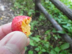 | ヤマボウシの実 | ツリフネソウが未だ咲いていた | 背に千両夫婦のカッパとある |