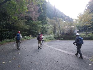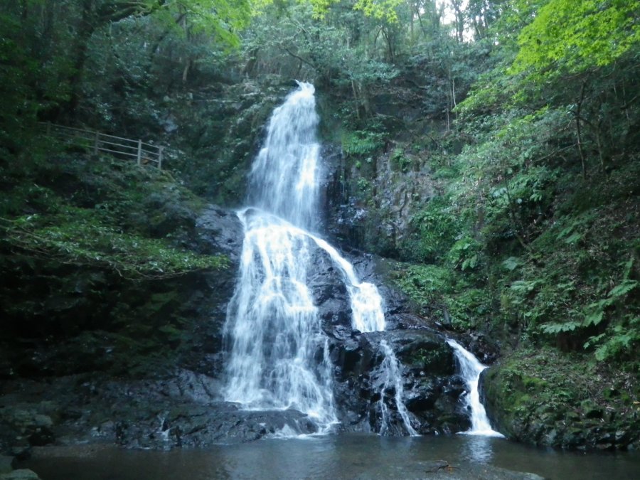 2011年10月16日(日)天気 晴れ 自然観察とボランティアの山の会の11月例会は、山口県は秋吉台の近く桂木山の計画である。今日はその下見である。桂木山の登山ルートはいくつかあるようだが、実際に歩いてみるとガイドブックも紹介されている白糸の滝からの整備された道が一番わかりやすく歩きやすいようだ。今回下りに「旧登山道」があると噂で聞いたので歩いてみたが、かなりわかりづらく結局途中でわからなくなってしまった。 ■出発時間: 午前6時半(北九州市小倉南区) ■メンバー: 男性3人女性2人 中国自動車道は美祢インターで降り、秋吉台方面へと進む。県道36号線を三隅方面へ進み柏木(かえのき)で白糸の滝の道標がある。道標に従い進むと白糸の滝の駐車場がある。この上にはキャンプ場があってそこに駐車場があるが、滝を見てそのまま歩きたいのでここに駐車する。トイレもあるので便利である。登山準備をして出発だ。木の大きなアーチ型の橋を渡り、公園内を歩く。トイレがあって奥に白糸の滝が見えてきた。落差は30mらしい。夏のなるとここで茶店が出てソーメン流しを楽しませてくれるようだ。不動明王の像を見て脇の急な石の階段を上る。滝を右に見ながら滝の上部に出る。沢沿いに歩き橋を渡るとキャンプ場に出た。この時期にキャンプする人はいないようで誰一人いない。舗装道の坂道を山手に歩く。椎茸の原木がドミノ倒しができそうな並び方をして道脇にある。舗装道が終わるとY字路にぶつかる。標識は右になっているので進む。沢を横断し、左岸に取り付くがすぐに沢を離れ、谷間を進む。周りは杉の植林帯だ。樹脂製の丸太で作った階段を上がる。階段はきついと言いながら上りきると尾根に出た。社名が書かれた案内板がある。ここを工事した会社ではないかと意見が出る。東南に進んできた道は尾根に出ると南西に方向を変える。最初のピークが見えたが、未だ後ろが山頂だ。なだらかな自然林の道が続き、階段が見えてきたら最後のひと上りである。一気に駆け上がると祠と鳥居がある山頂に飛び出た。山頂は北側以外は開けていて秋吉台も良く見える。未だ昼食には時間が早すぎるので早々にげざんすることに。しかし、今日は下見なので別の下山ルートである噂で聞いた旧登山道を下山することにした。ところがりっぱな登山道と思って降って行ったら途中で鉄塔コースであると気づいた。どうも山頂で涸れ木などで塞いでた場所が旧登山道の入り口だったようだ。山腹を巻いて尾根に取り付くと道があった。地図で見ても旧登山道のようだ。赤テープもしっかりある。尾根をどんどん下だる。テープが見当たらなくなり道も踏み跡がなくなってきた。しかし、そのまま尾根をとにかく降ると沢にでた。横断すると朝歩いた登山道である。後は往路を降った。 <コースタイム> 白糸の滝P-(30分)-Y字路-(60分)-山頂-(120分)-Y字路-(30分)白糸の滝P※休憩時間は含まず。間違って進んだ時間は含める。 |