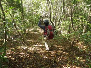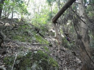 | 岩場を降るが道ははっきりしない | とにかく尾根を降る | 急斜面を降る |
