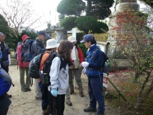 | 天徳寺の山門をくぐる | 左手の階段を上がり山手に進む | ここで山の紹介をしていただく |