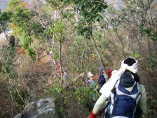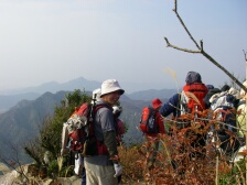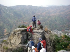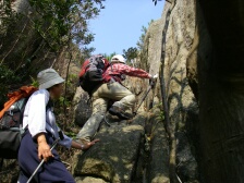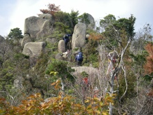 | 西目山から右田ケ岳を見る | 岩をよじ登る | 西目山山頂が見える |