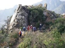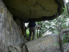 | 岩の上に人が見える | 拡大すると | 右手の板状の岩の下を歩く |