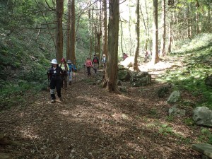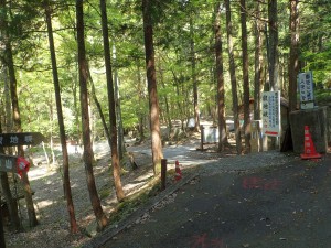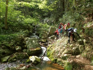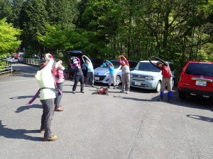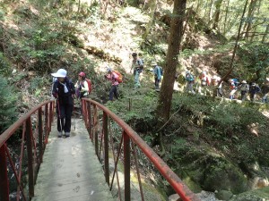 | 寂地峡入口Pで準備体操(9:30) | ||