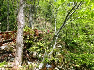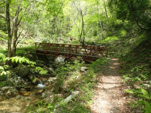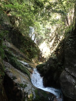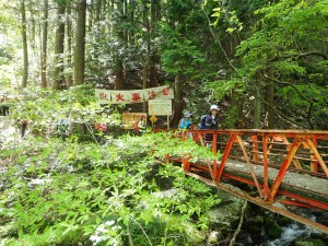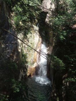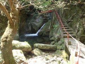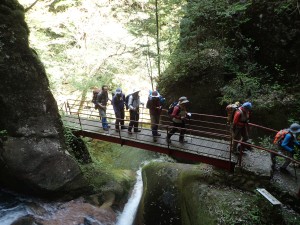 | 「寂地峡五竜の滝」とある | まずは小さな滝 | 橋が続く |