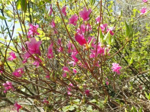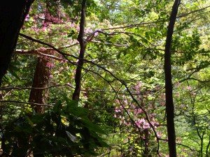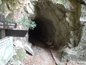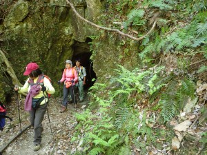 | ミツバツツジが咲いている | 狭い石段を登ると | 何とトンネルがある(木馬トンネル) |