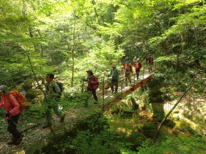 | 橋を渡る | チゴユリ発見 | 滑りやすいので注意 |