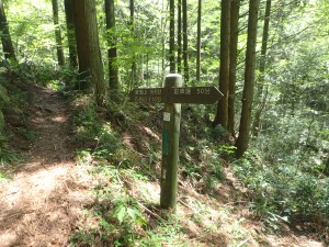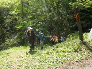 | 道標は要所にある | ツクバネソウ | 新緑が気持ちよい |