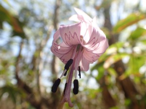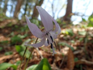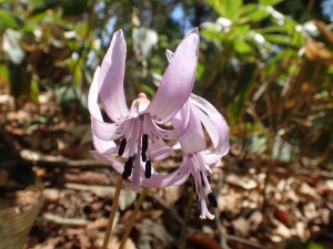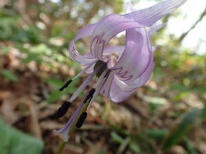 | ▲カタクリ(片栗)ユリ科・・・・桜のような形をした模様は「蜜標」と呼ばれ、虫たちに蜜のありかを示しているそうだ | ||