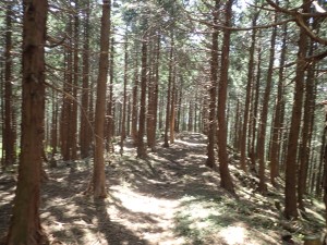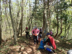 | ミツバツツジ | 植林帯の尾根道 | 藪ケ峠(14:05) |