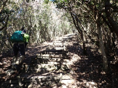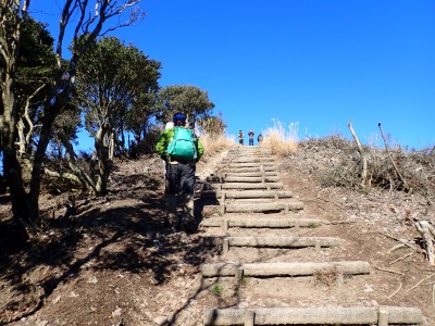快晴の中、出発点である済生会下関総合病院に着くとすぐに支度をして歩き始める。林道から登山口に取付くといきなり急斜面。暖機運転ができていないのでとてもきつい。景山を過ぎ、森林浴に癒やされシタキ場山と言う謎の名前に議論百出した上である結論に達したが、とても公表できるものではない。縦走路はやがて階段のアップダウンとなる。歩きやすいが階段は疲れる。雌鋤先山では幼稚園児くらいの子供二人がピースをして母親らしき人が構えたカメラを見ていた。私たちは少し休憩して次の雄鋤山を目指す。階段の縦走路は続く。雌鋤先山よりも広く展望も広がる雄鋤先山に着くと子供連れに家族がお弁当を広げていた。本番では私たちもここで昼食にすることにした。再び階段の続く縦走路を重い足を運んでついに竜王山の頂に立つ。頂上は多くの登山口から登ってきたハイカーで賑やかだ。ちょうどランチタイムでもある。ほぼ360度の展望で鶴見岳と由布岳、英彦山も望むことができた。そして何より海が素晴らしい。青空の下に水平線や島々が絵のように見渡せる。