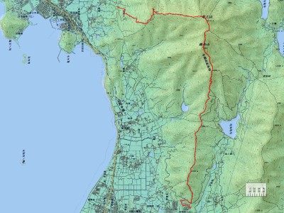 済生会病院-(10分)-登山口-(50分)-シタキ場山-(45分)-雌鋤先山-(18分)-雄鋤先山-(20分)-竜王山-(25分)-龍王神社上宮-(35分)ー吉見登山口 ※全行程で