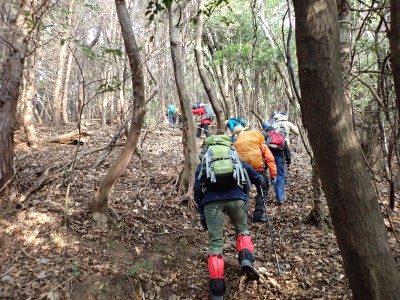 済生会病院-(15分)-登山口-(60分)-シタキ場山-(55分)-雌鋤先山-(20分)-雄鋤先山-(20分)-竜王山-(30分)-龍王神社上宮-(45分)ー吉見登山口-(20分)-JR吉見駅 ※全行程で