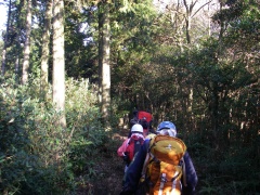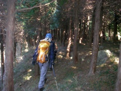 | ここも急斜面 | 檜林を歩く | 岩があるとなぜかホッとする |