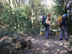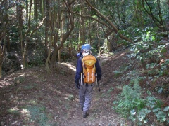 | 自然林の中を気持ちよく歩く | 車道から来た道との合流地点か? | 直登コースと巻き道コースとある |