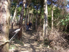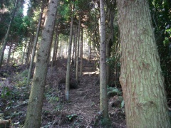 | 吉見峠へは急斜面の連続 | 杉林の中、かなりの勾配 | 吉見峠(正面左に鬼ケ城への登山口) |