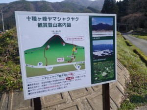 2012年4月8日 天気 晴れ ■出発時間:6時30分(Hさんの会社) ■メンバー:男性2名、女性4名 「自然観察とボランティアの山の会」の5月例会登山は、山口県と島根県の境にある十種ケ峰の計画である。登山口は山口県側の神角からであるが、近くに徳佐と言う名の地名がある。十種と書いて「とくさ」と読むが、山名の由来は御食主命が十種神宝(とくさのかんだから)を当山に埋めたという伝説からとのこと。 九州道から中国道で徳地I.Cで降りて国道489号線を北上し、国道9号線に出て長沢交差点より国道315号線に出て山陰へ向かい神角(十種ケ峰とある)への標識があるので右折。しばらく行くと右手に登山口の案内板があって駐車場は少し通り過ぎたところにあった。時計を見ると8時50分。本番のマイクロバスを駐車するところを考えながら登山準備をして出発する。案内板がある神社まで車道を歩くが途中で地元の人親切に色々と教えてくれた。大きな案内板には、ヤマシャクヤクの鑑賞登山案内とあって一方通行とのことで神社側から上り始める。民家の間を歩くが枝垂れ桜やかなり古い桜の木など花が咲けば見事であろう。植林帯を過ぎると勾配はきつくなりさらに進むと谷間の涸れ沢になる。石の上を歩いて高度を上げる。足元には、小さなヤマルリソウの花がやさしく微笑んでくれている。堰堤が見えると沢が終わり、急に景色が変わる。目の前にヤマシャクヤクの株がある。歩きながら上に目を向けると「こりゃすごい!!」と思わず声が出た。花が咲いた映像を瞼の中に想像してみる。本番が楽しみだ。ロープが張られて保護されている。一方通行の意味が良くわかった。この光景は稜線まで続いた。稜線に出ると左に尾根を歩く。樹林帯を抜けると360度の展望で狭い尾根道の先に山頂が見えた。11時ちょうど山頂に着く。山頂には山座同定を楽しめるよう山名が書かれた立体方位盤がある。(勝手に名前を付けた)景色と空気を味わいながら昼食を済ませ11時30分下山開始。下山は北側から回り込んで降る。すぐに小さな赤い鳥居が見える。熊野権現とある。鞍部まで草原で振り返ると鍋ブタのような山頂が見える。松の木の多い樹林を抜け、割と新しい大きな鳥居が見え、神角への標識をみて進む。林道のような道からまたまた標識があって植林帯の中を歩く。往路とは全く違う景観のコースである。フェンスを過ぎると民家が見えて登山口に無事下山。 帰りは、温泉の下見と道の駅「長門峡」に立ち寄り無事帰宅。今日も山に自然に仲間に感謝である。 <コースタイム> 神角登山口-(60分)-ヤマシャクヤク群生地の始まり-(20分)-稜線-(20分)-山頂-(80分)-神角登山口※休憩時間含まず。全行程で3.5時間でした。 |