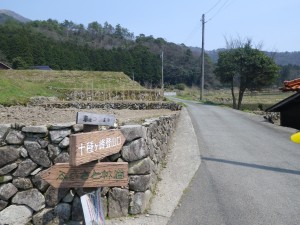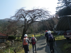 | 神社の鳥居を左に見て | 民家を抜ける 見事な枝垂れ桜 | 生木地蔵とある |