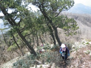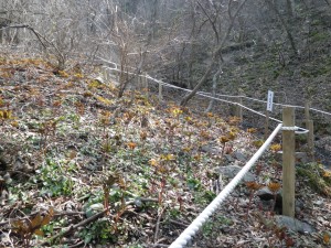 | 福寿草が植えられている | 下山口 | 山頂が遠くに見える |