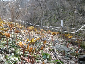 | 歩きやすい登山道 | 勾配がきつくなる | ふきのとうがたくさんある |