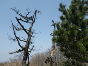 | 右から降りてきたが、左にも登山道がある | 枯れ木 | 山頂を振り返る |