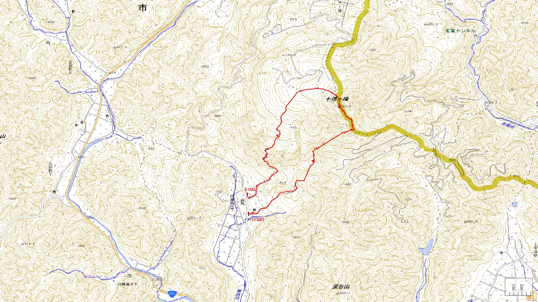 十種ケ峰登山コース(GPSによる歩行履歴)