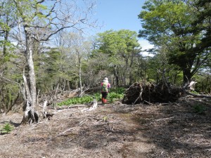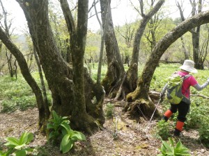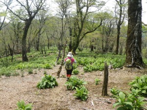 | 上福根山への分岐で北九からのグループとお会いする | 枯れた巨木をくぐる | バイケソウの群落 |