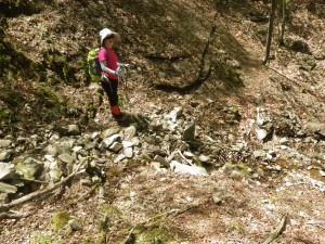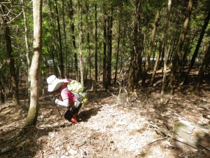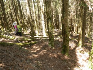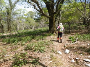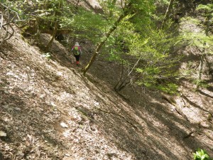 | 石楠越(13:23) | ここから北へ降る | 山腹の道は結構厳しい |