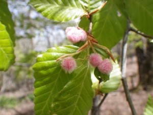 | ブナハアカゲタマフシ(きれいな虫こぶ) | 枯れたスズタケが多い | 上福根山との分岐(10:08) |