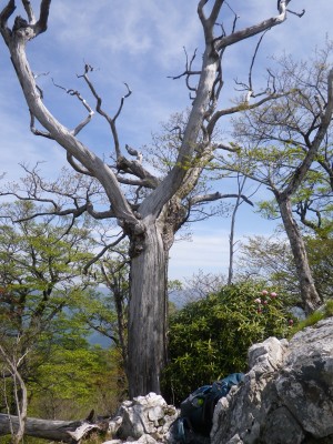 | 白骨化した木(半分生きている) | 山頂にて | ミツバツツジ |