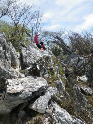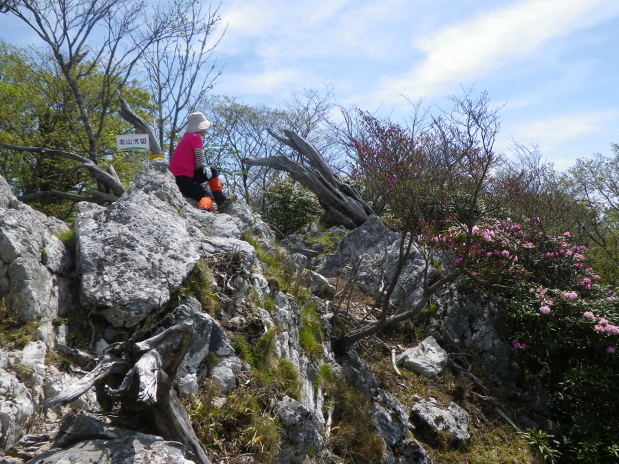 | 岩尾根に出る | 満開のシャクナゲ | 北山犬切頂上(10:15) |
