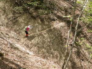 | 小さな沢には水が流れていた | 滑りそうな斜面を進む | オオカメノキ |