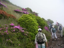 | 一番の危険箇所 | 岩尾根歩きとなる | ミヤマキリシマが見ごろだ |