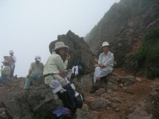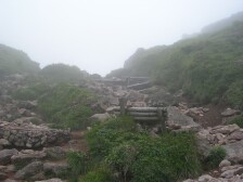 | 右手由布岳(ガスで覆われている) | 柵がある(この先トイレあり) | フタリシズカ(二人静) |