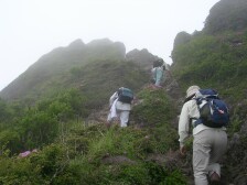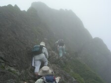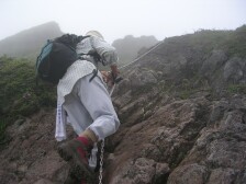 | ちょっと腹ごしらえ | 鎖を頼りに | 岩歩きが始まる |