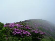 2007年6月9日 天気 曇りのち晴れ 遊山歩6月例会は色々とあったが由布岳お鉢巡りとなった。参加者はMORIさん夫妻と私たち。たろうさんが、都合がつけば登山口で待っているとのことだったが、都合が悪かったようで会うことはできなかった。雨模様のため、心配だったが、何とか持ちそうな天気だ。 由布岳は何度か来たが、悪天候だったり、時間がなかったり、また、他の人の話から、かなり障子戸の岩登りは危険だと聞いていたこともあり、未だお鉢巡りをしていなかった。今回、そのこともあり、MORIさんに案内していただくことにした。 <アクセス> 北九州方面からだと宇佐別府道を院内料金所手前(左に出る)で降りて国道387号線を右折し、円座の先を左折し、国道500号線へ 道なりに行く。高速のガードをくぐり右折する。高速道沿いに進み、塚原温泉を左に見てガードをくぐり、すぐに左折し、再びガードをくぐって行く。(鶴見岳と由布岳の間を行く)T字路にぶつかったら右折し、少し走ると登山口。(念のため地図やナビを確認してください) <コース詳細> 登山口より由布岳を目指し草原を歩きます。樹林帯にぶつかり柵を越え、自然林の中を歩きます。途中で観察路と道が分かれますが合野越を目指します。登山口から約50分程度で急に開けたところが合野越です。再び自然林を進みます。道はジグザクとなり高度を上げ、視界が開けてきます。ミヤマキリシマの花に見とれながら周りの景色を楽しみながら歩きます。登山道の石が大きくなる感じがして急登となっていき、上に目をやると東峰と西峰の鞍部、マタエが見えてきます。マタエで休憩をしていよいよ西峰目指し、岩を上ります。障子戸といわれる場所です。鎖を頼りにしたり三点確保で登ります。トラバースするところは慣れないと怖いかもしれません。稜線に出ると岩尾根をミヤマキリシマやイワカガミの群生を見ながら進むと西峰山頂です。 <次ページへ> |