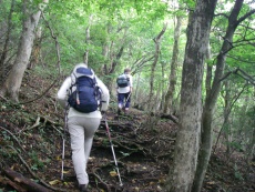| 自然林のなだらかな道を歩く | ||