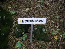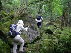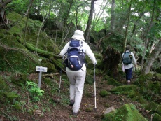 | 自然観察路の標識 | 上りが続く | 苔むす岩々 |