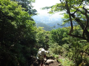 | 時折樹の間から鞍ケ戸が見える | 九十九折の登山道 | ここから厳しい登りとなる(8:55) |