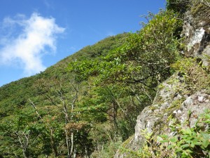 | 大きな岩の間を抜ける | 植林帯を抜ける | 双二峰だ! |