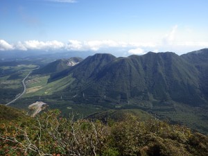 | ▲岩場から鶴見岳〜内山を見る | ||