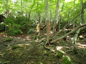 | ここより森の中へ | 鹿のしわざ? | 涼しくて気持ちよい |
