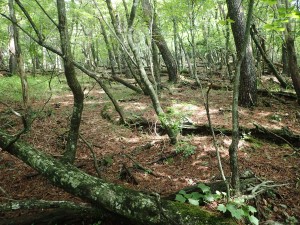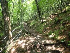 | しばらく森林帯を歩く | 九十九折りの道 | 視界が開けた |