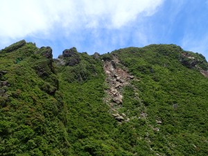 | 東峰へ急登する | 障子戸と呼ばれる絶壁 | ここにもミヤマキリシマの花が |