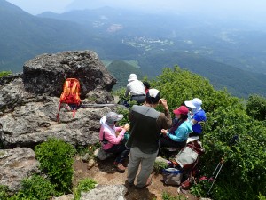 | 飯盛ケ城にて由布岳を背に(13:50) | 南へと降る | 登山口を目指す |