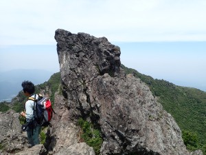 | お鉢巡りしている人が見える | 鶴見岳 | 東峰のシンボルの岩 |