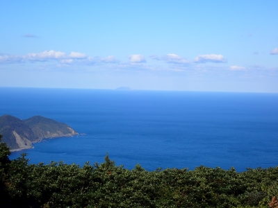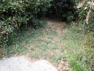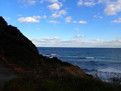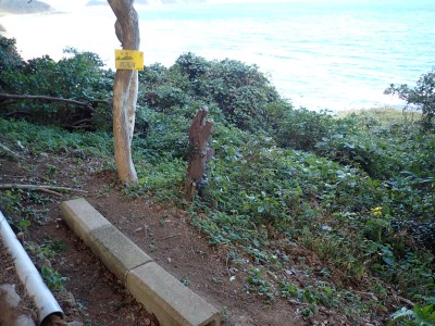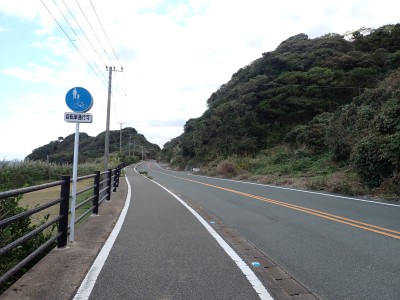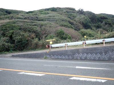 | 東へ車道を歩く(8:30) | 黒崎鼻のところから海を眺める(8:34) | 道路挟んで反対側に登山口がある | |