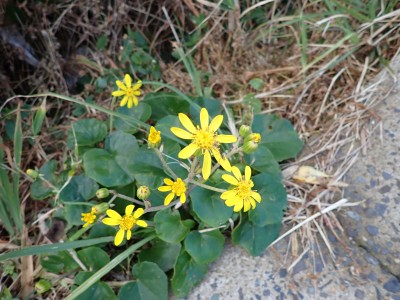 | ツワブキの花がたくさん・・・・中原登山口へ(10:58) | 舗装道を歩く | T字路は左に(11:04) | |