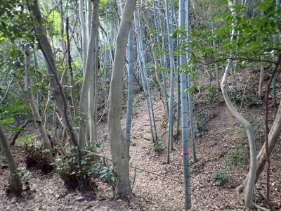 | きれいな竹林を抜ける | 中原登山口からの合流点 | 大きな松の木が倒れていた | |